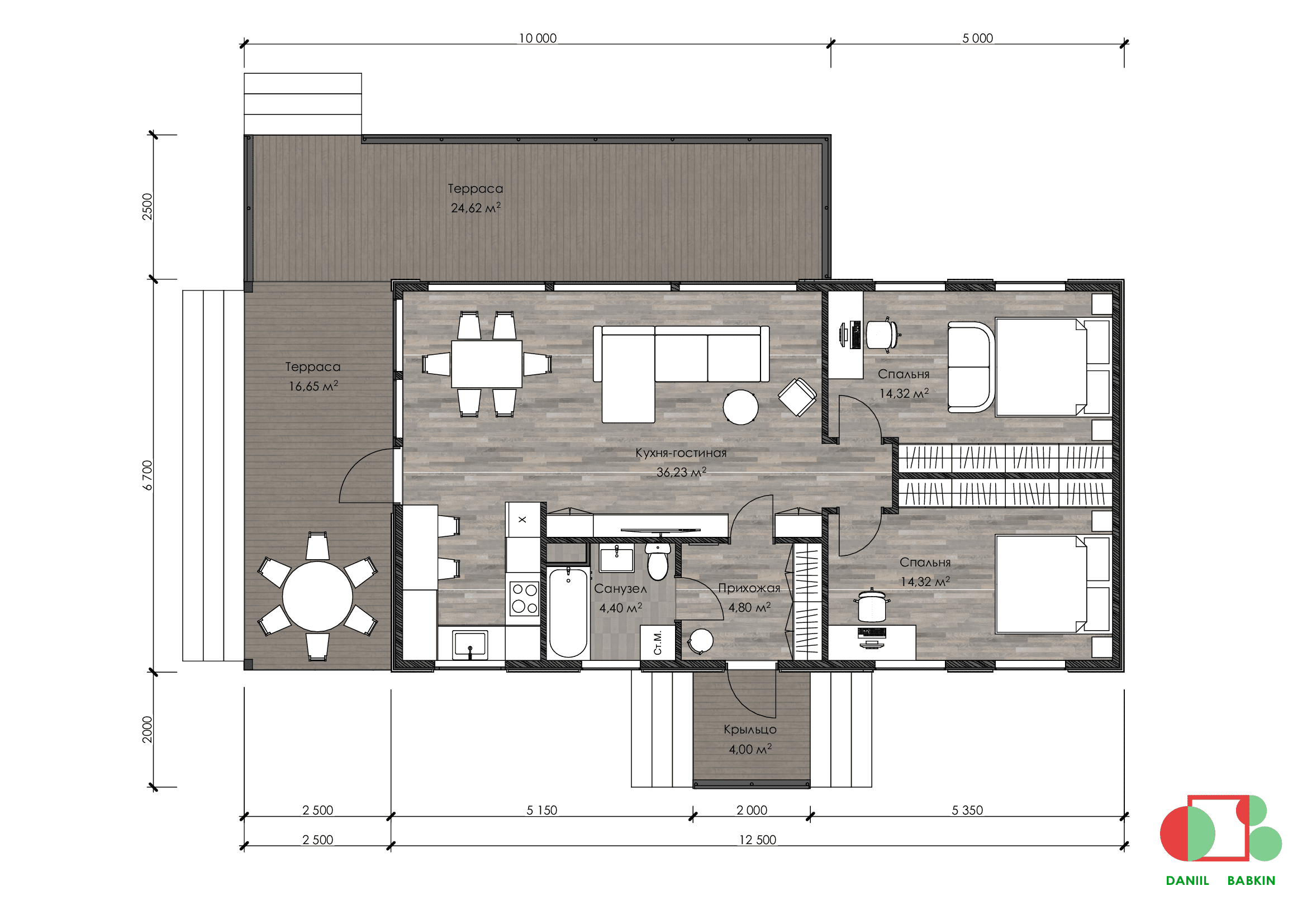 Проект одноэтажного дома Пригородный, под ключ, ламинат, двери Экошпон, отделка Hauberk, коммуникации, сантехника.