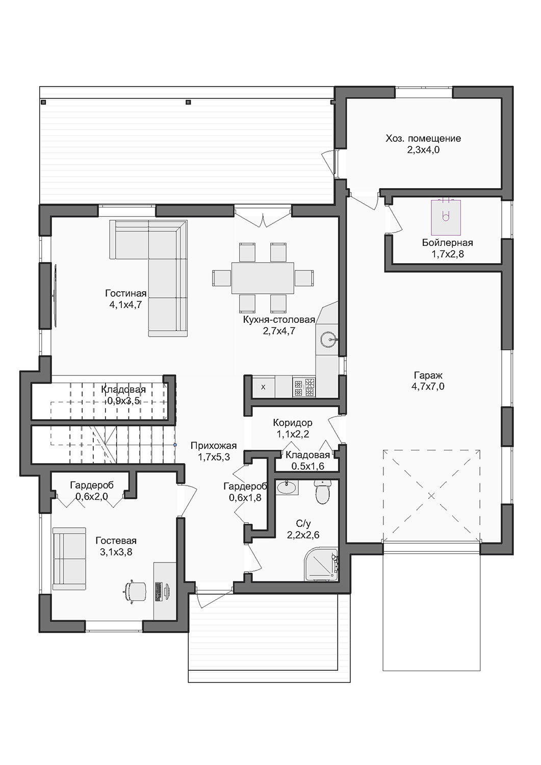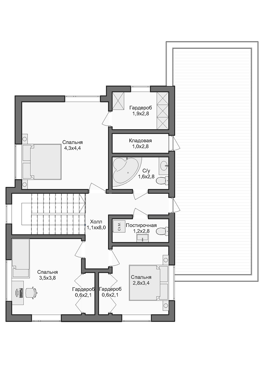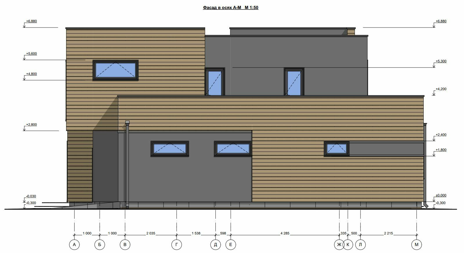 - Высота дома: 6.8 м