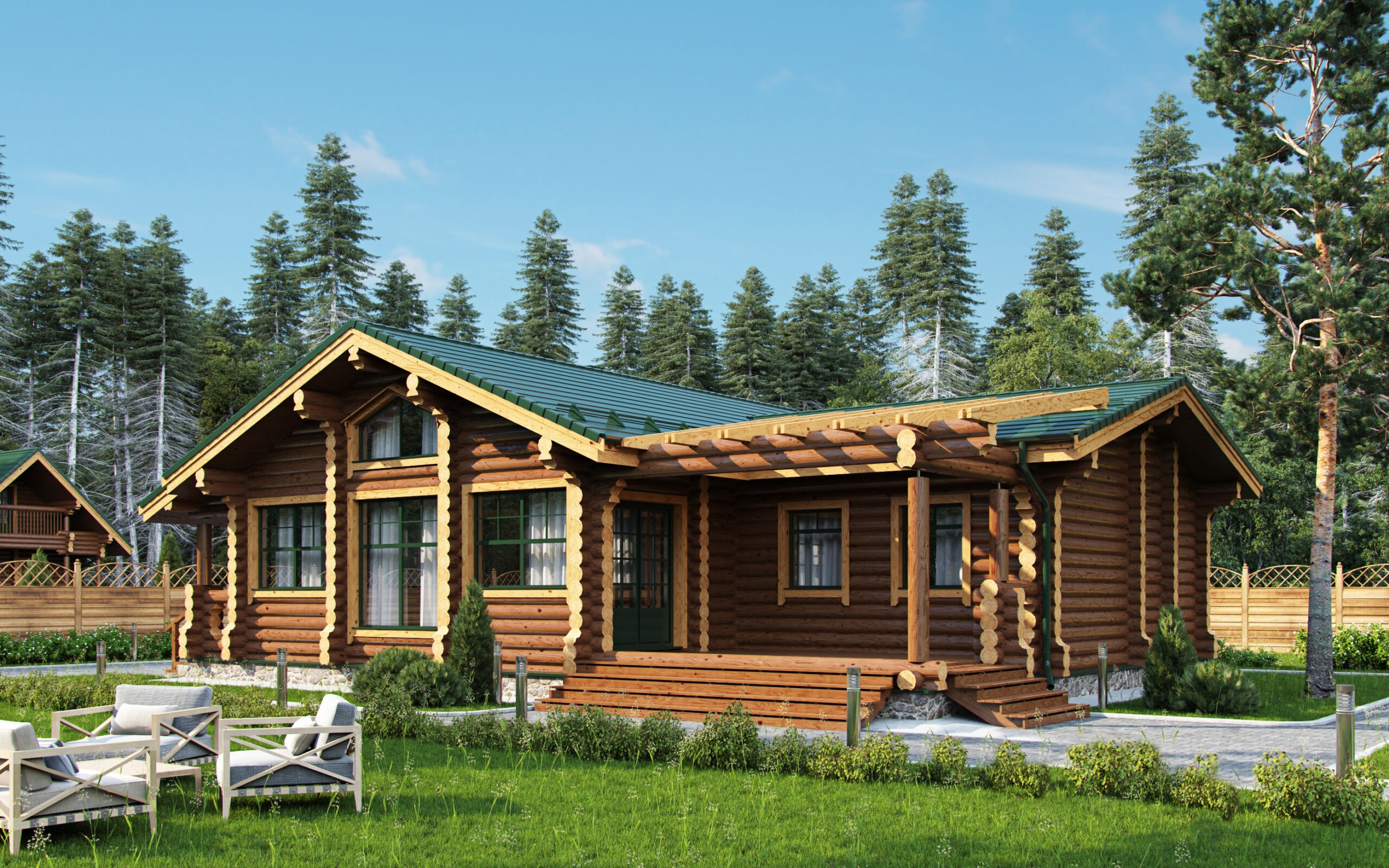 - Стеновой комплект: отборный хвойный лес 1 сорта (сосна-ель) естественной влажности (г. Киров)