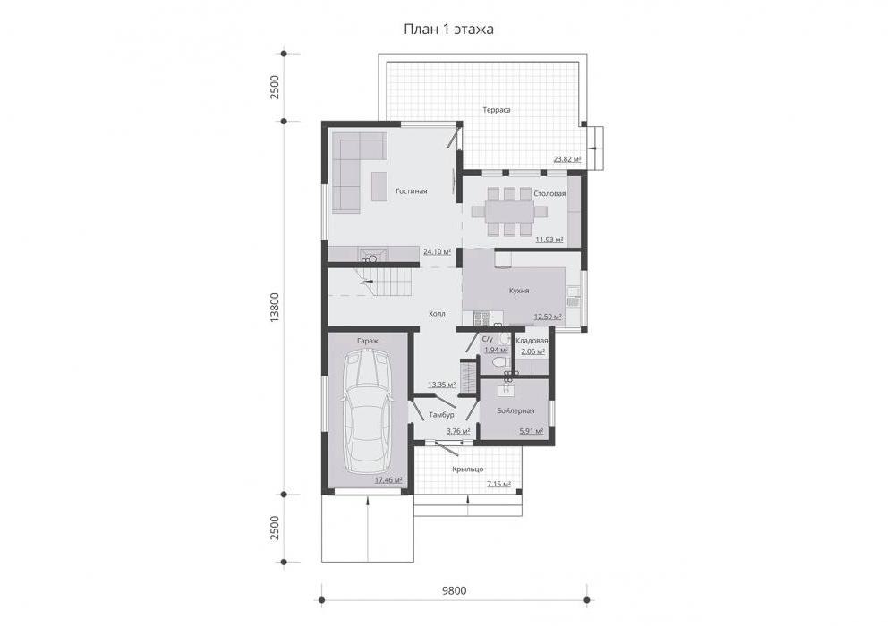 - Отделка фасада: Декоративная штукатурка, декоративный камень