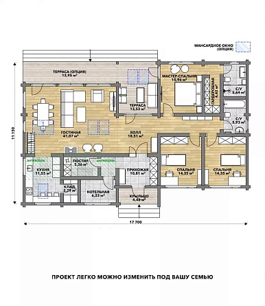 Проект одноэтажного дома Дом из профилированного бруса 9 х 11