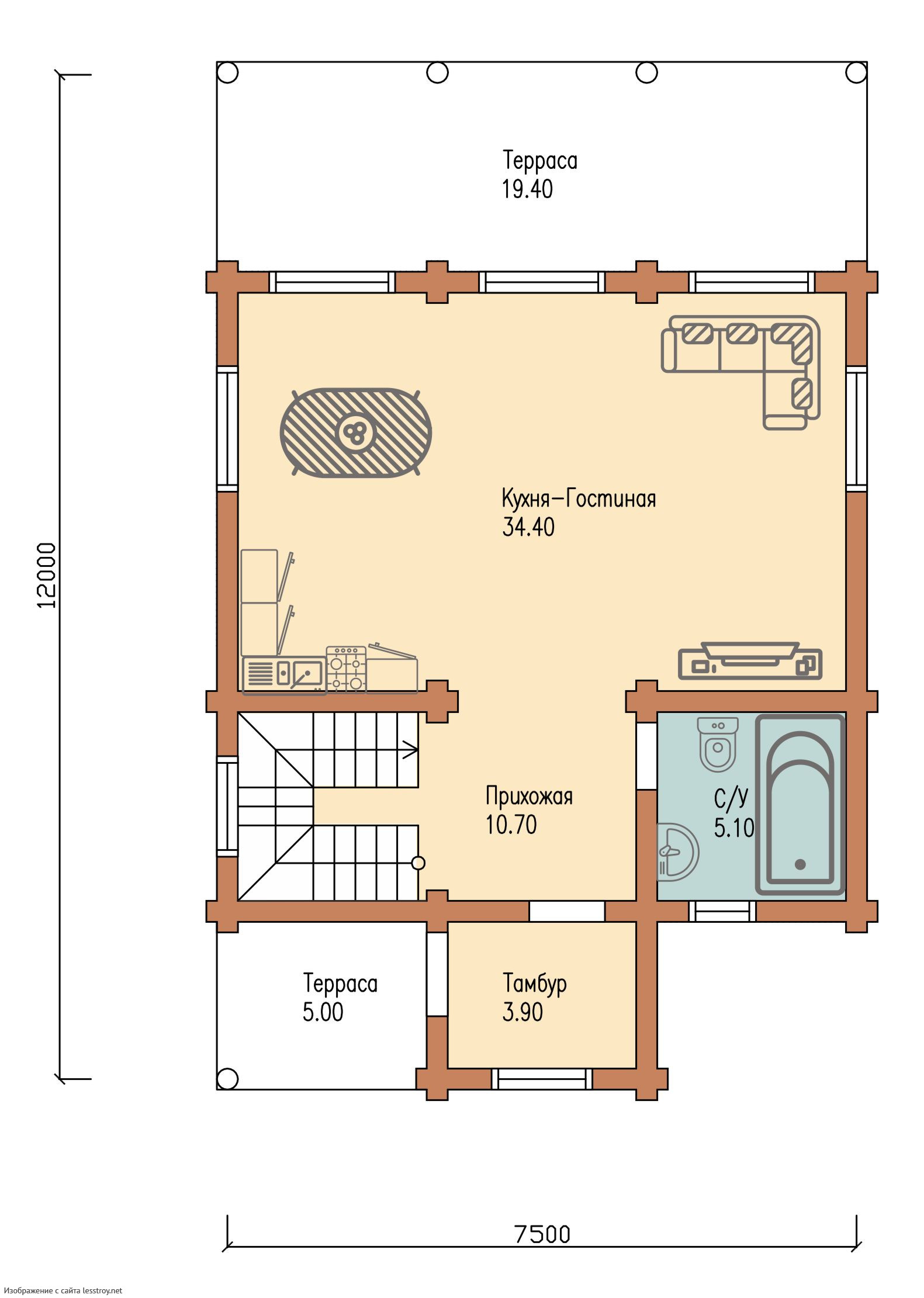 Архитектура создает гармонию с окружающей средой. 94 м² — площадь, где возможно всё: от отдыха до работы. Крыша из ондулин подчёркивает современный облик дома. Двухэтажная просторная планировка обеспечивает комфортную навигацию внутри дома. Архитектура выполнена в стиле дома в классическом стиле.Характеристики