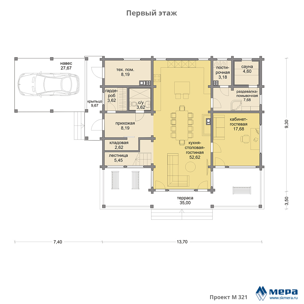 В этом пространстве приятно жить - все сделано с заботой о жильцах. Дом вмещает 72 м² заботливо оформленного пространства. Наличие 2 спальни удовлетворит запросы семьи с детьми. Одноэтажная уютная планировка разграничивает спальные и дневные помещения. Стены из бруса хорошо держат тепло и защищают от шума.Характеристики