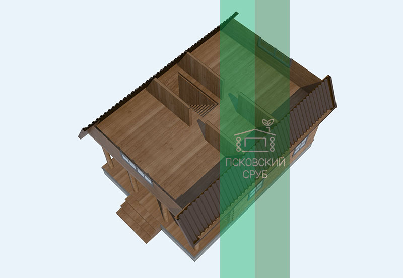 Проект двухэтажного дома Сруб дома 6х6 с террасой и мансардой