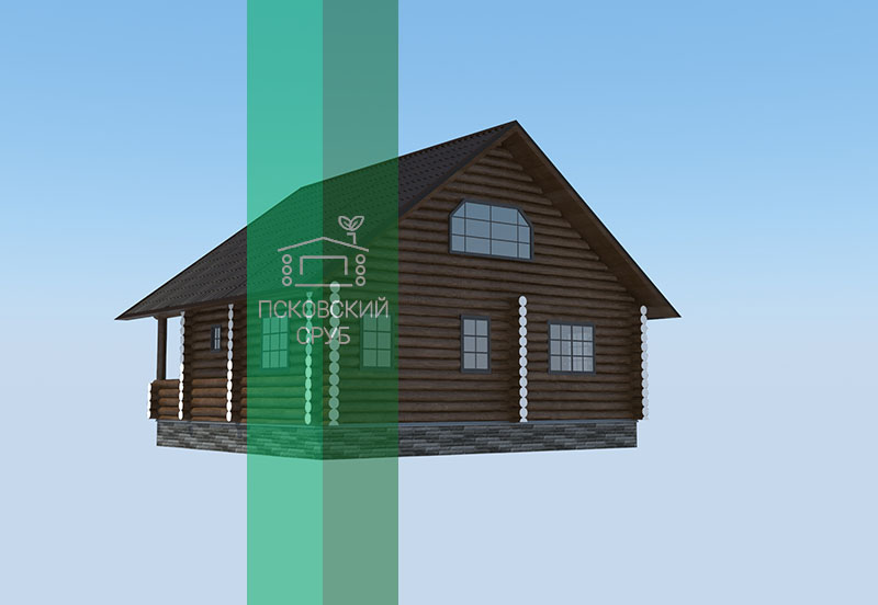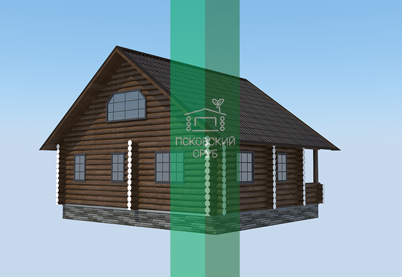 Проект двухэтажного дома Сруб дома 9х9 с мансардой (ломаная крыша)
