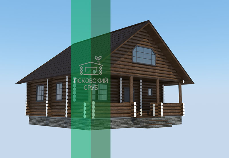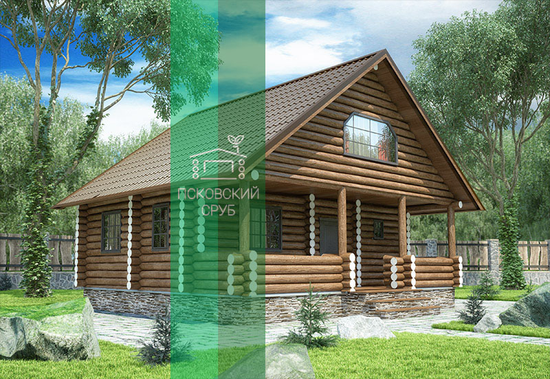 Проект двухэтажного дома Сруб дома 6х9 с рубленной террасой 2 метра