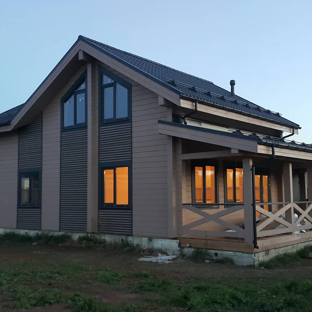 Элегантный дом из клееного бруса площадью 170 м² в скандинавском стиле. Два этажа с четырьмя спальнями наполнены светом и воздухом. Битумная черепица придает кровле особую выразительность. Современное прочтение северных традиций.Характеристики