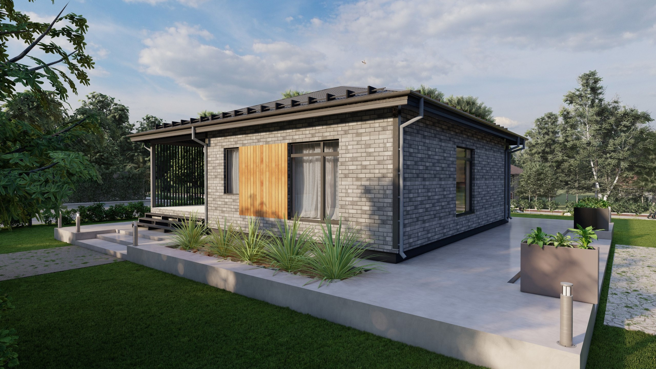 - Финишное покрытие из металлочерепицы GRAND LINE коричневого цвета, толщиной 0,5 мм с покрытием полиэстер. В комплект входят металлические планки: ветровая, карнизная, коньковая в цвет кровли. Стропильная система монтируется из обрезной доски 40х200мм, влажностью от 22%. Обрешётка - из обрезной доски 25х100мм от 22% влажности с шагом 35 см Контробрешётка - из обрезного бруска 40х40мм. Отделка подшивов свесов кровли выполняются из строганой доски 20х100-150 мм. Сорт АВ, без покраски. Ширина свесов 400 мм.