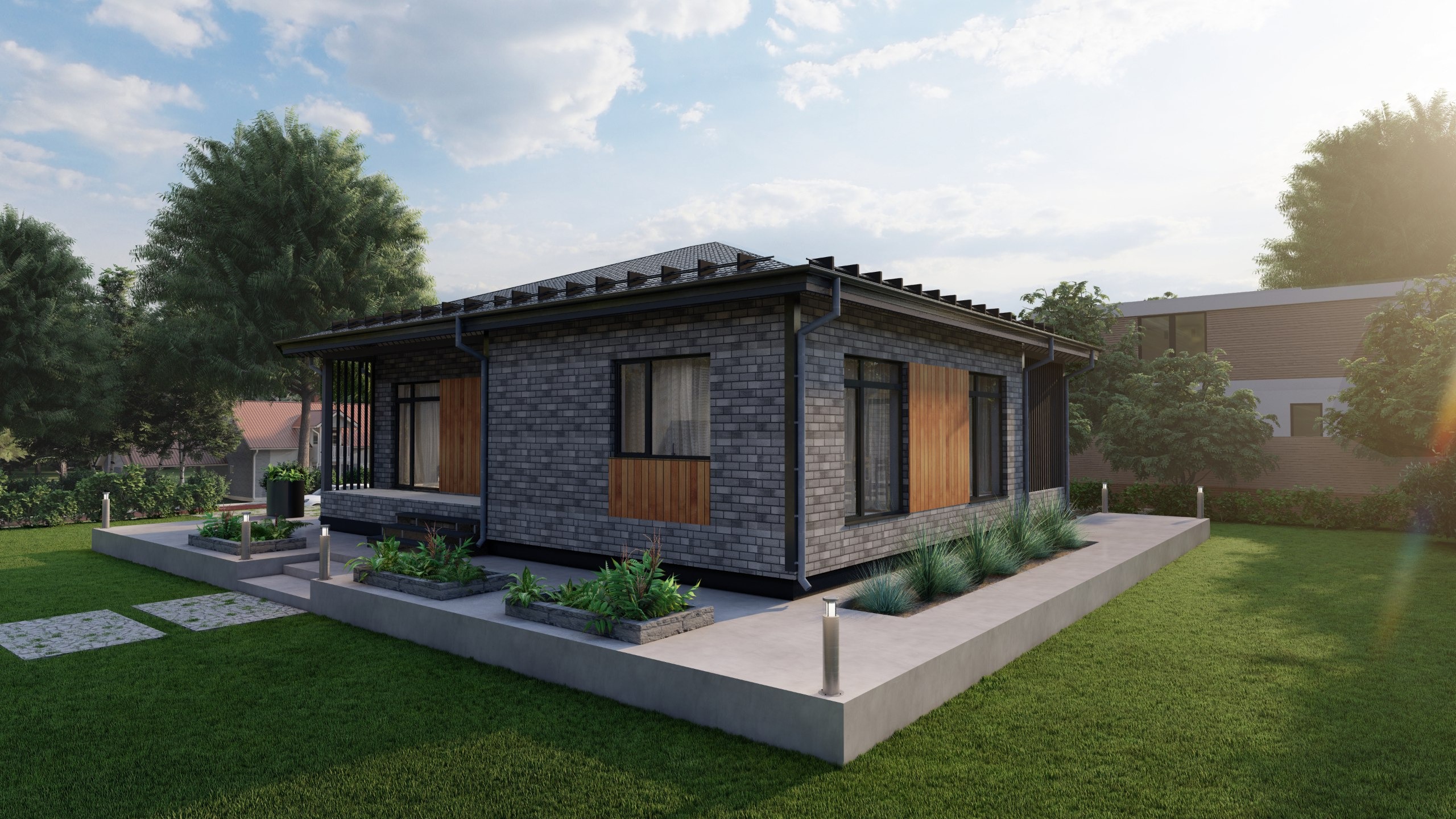 - Остекление не превышает 15% общей строительной площади. Пластиковые 1-камерные окна белого цвета без ламинации в профиле 60 мм, с армированием, одной поворотно-откидной створкой, подоконнками ПВХ шириной 25 см и металлическим уличным водоотливом не более 15 см. Фурнитура Roto/Fornax или аналог. Временная входная утепленная металлическая дверь с порошковым напылением снаружи коричневого цвета с замком и задвижкой.