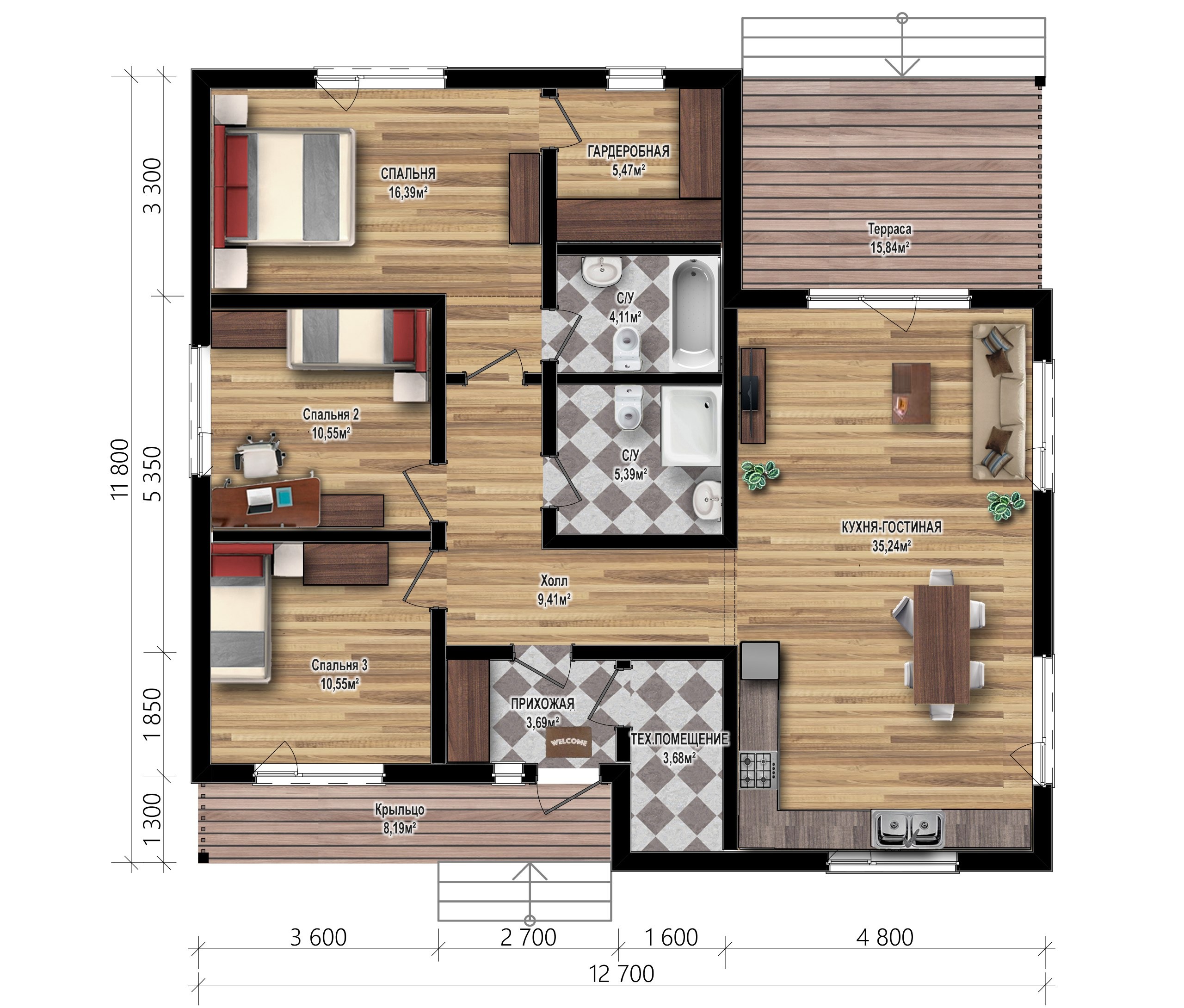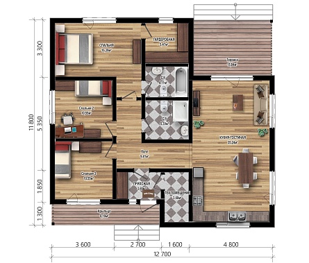 - Тип кровли: Дома с четырехскатной крышей (вальмовой)