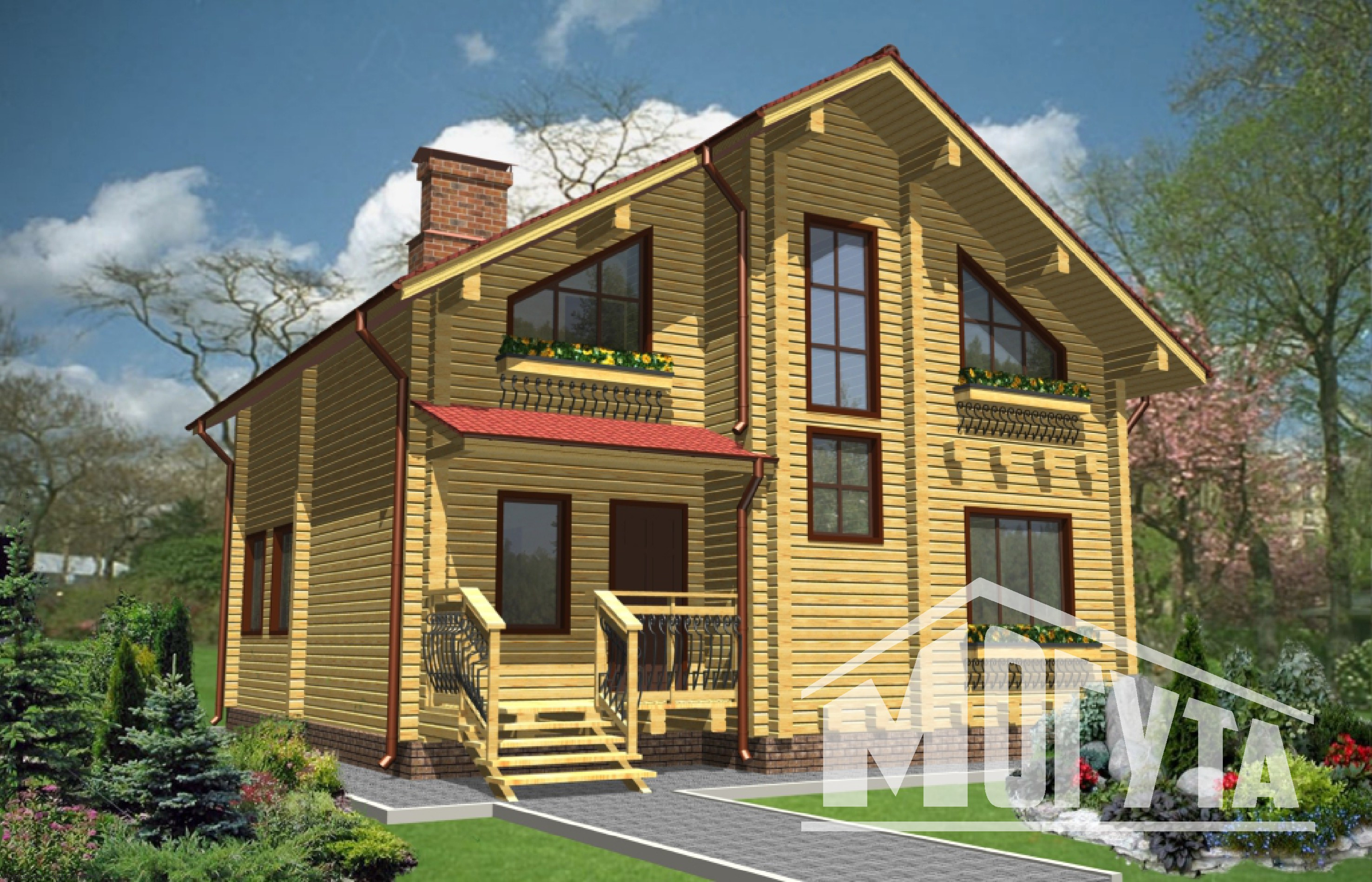 Элегантный двухэтажный дом площадью 147 м² из бревна в стиле модерн — это сочетание традиций и современности. Три спальни и металлочерепица делают его отличным выбором.Характеристики
