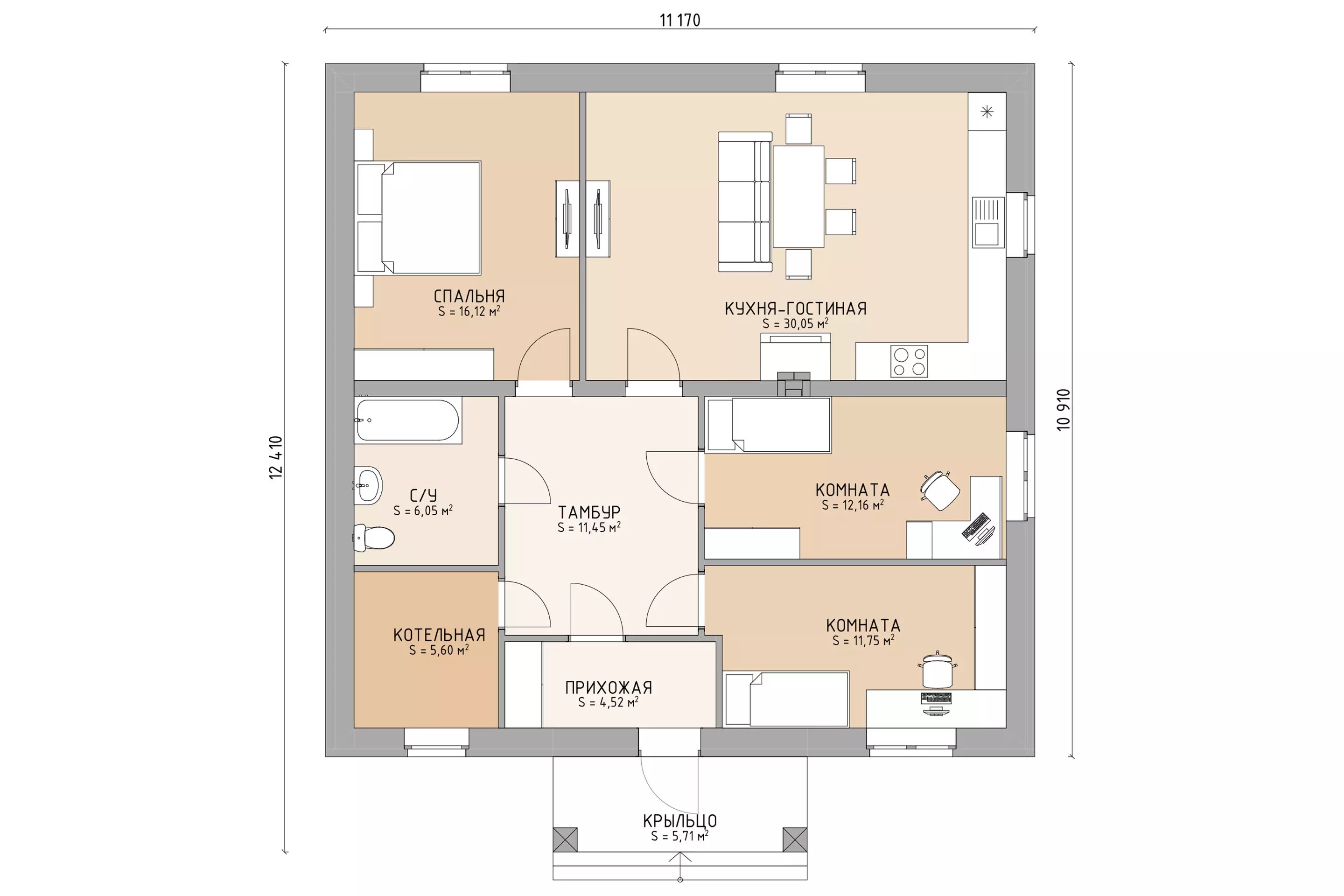 Проект одноэтажного дома Дом id-68375