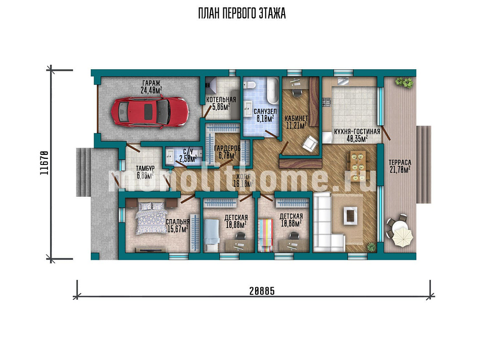 Проект одноэтажного дома Таир одноэтажный 15х15