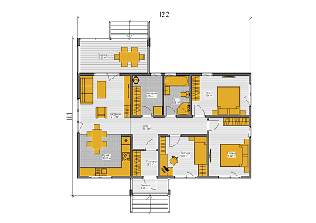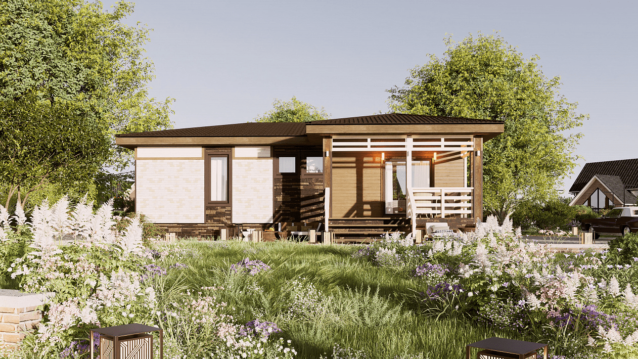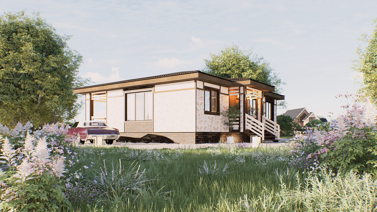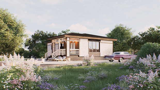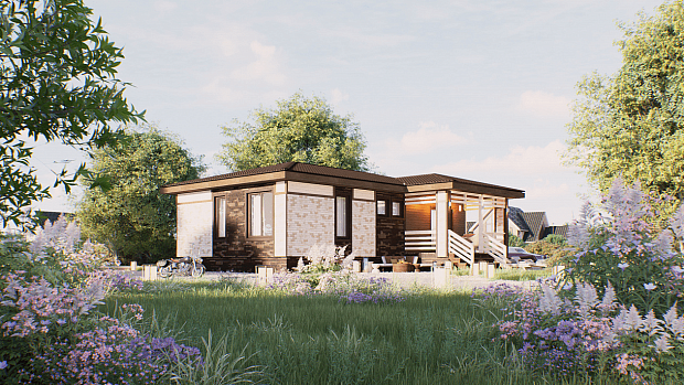 - SIP 224 мм. (ориентированно-стружечная плита OSB-3 Талион/Калевала/EGGER, толщиной 12 мм; самозатухающий пенополистирол НовоПласт/Knauf Therm). Соединение панелей через строганый брус камерной сушки сечением 95х195 мм.