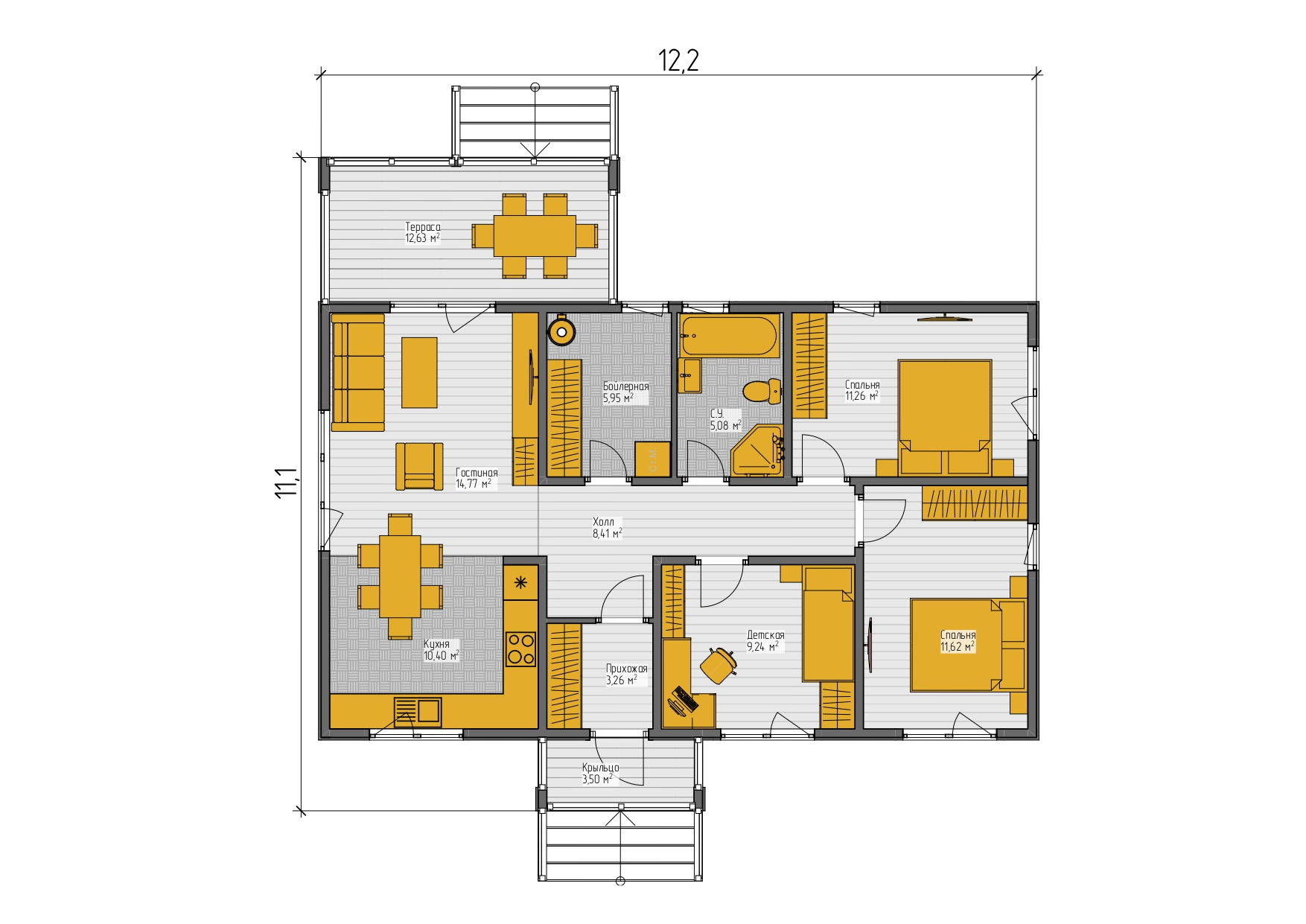 - Сухая строганая доска камерной сушки сечением 45х145мм. (несущие стены) и 45х95мм (не несущие перегородки).