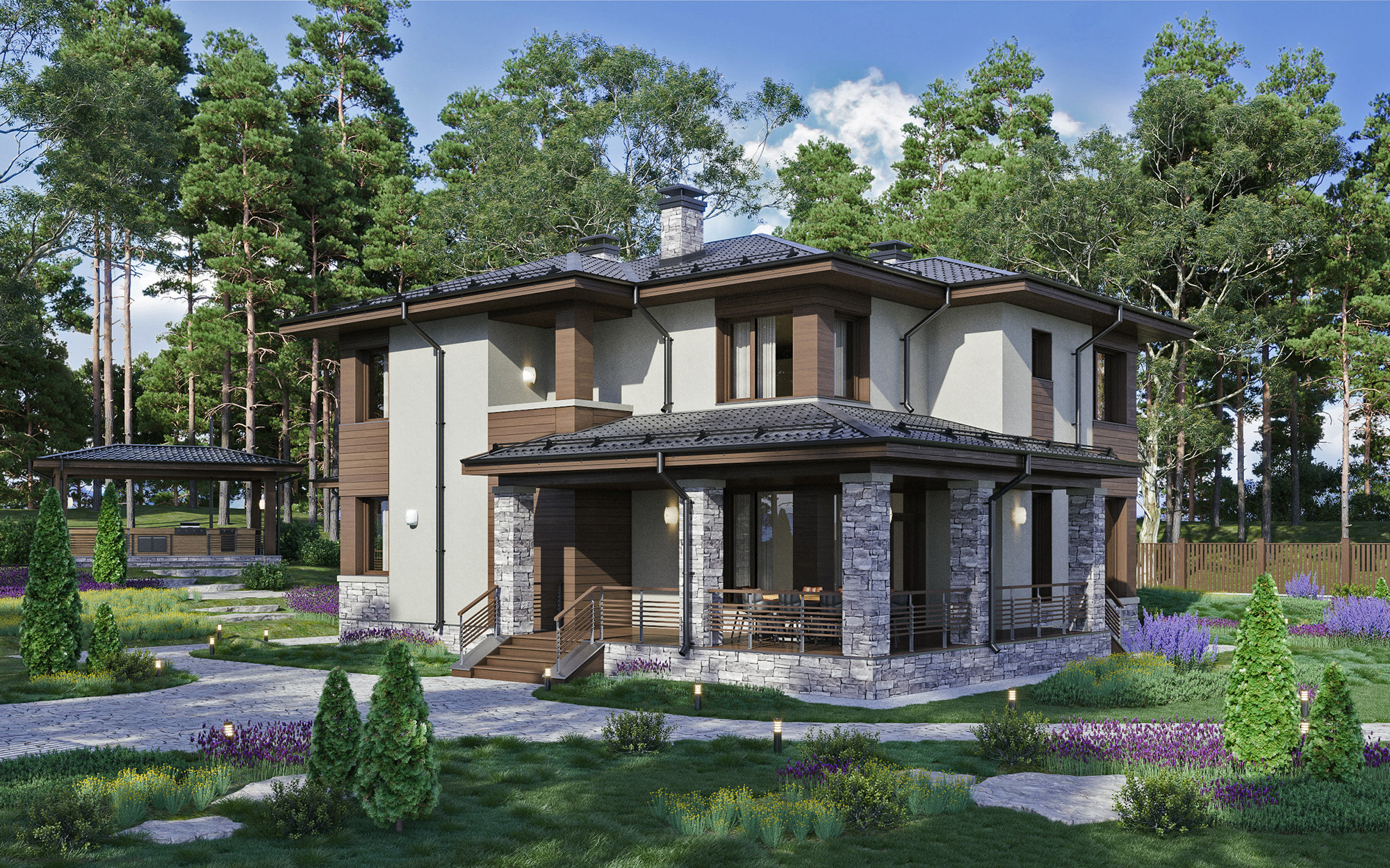 Удобство, ставшее новым стандартом. Каждый из 98 м² продуман до мелочей. Крыша из металлочерепица подчёркивает современный облик дома. Дом спроектирован в духе дома в классическом стиле. Стены из бруса хорошо держат тепло и защищают от шума.Характеристики