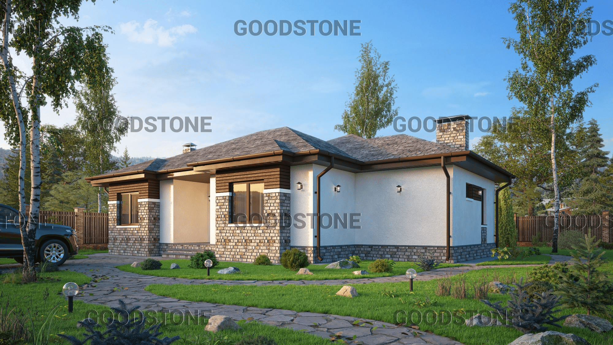 - Утепленная монолитная ж/б плита с ребрами жесткости вниз (бетон М350, толщина 200 мм, арм. ø12мм, шаг 200 мм; сечение ребер 400х400 мм, арм. Ø12 и 8 мм, шаг 200 мм; песчаная подушка 300 мм). Ленточный монолитный ж/б фундамент под террасу, гараж (при наличии)