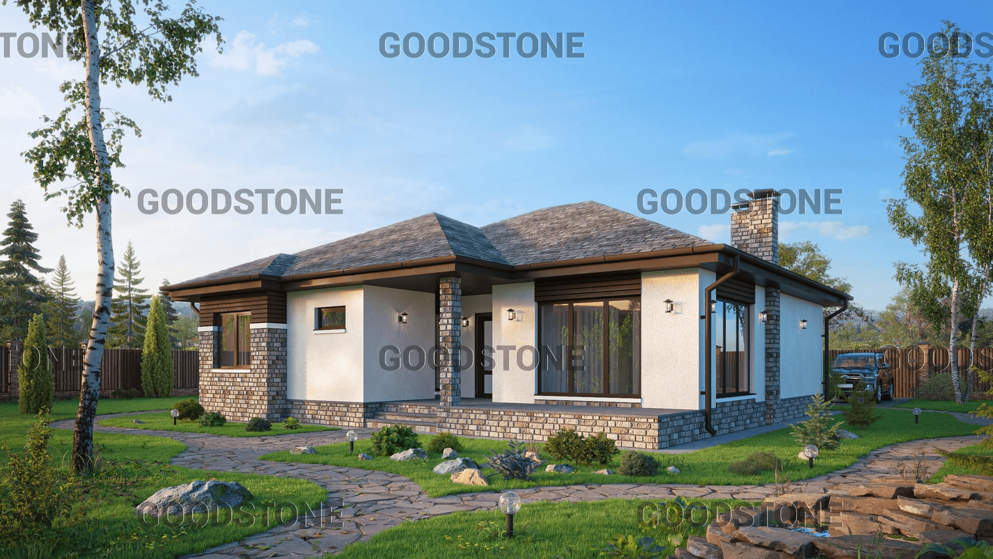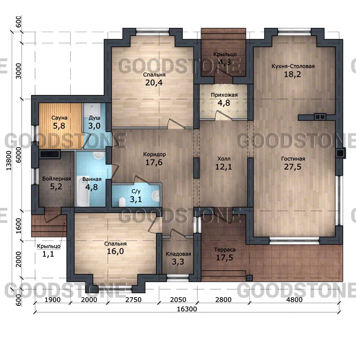 - Внутренние несущие стены из керамического поризованного блока Porotherm толщиной 250 мм (М100, ж/б дверные перемычки; монолитный ж/б пояс)