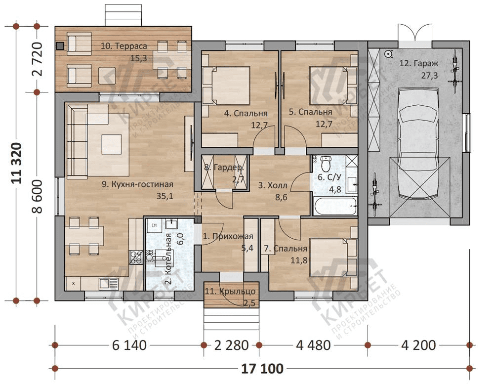 Проект одноэтажного дома ТКБ-145-1