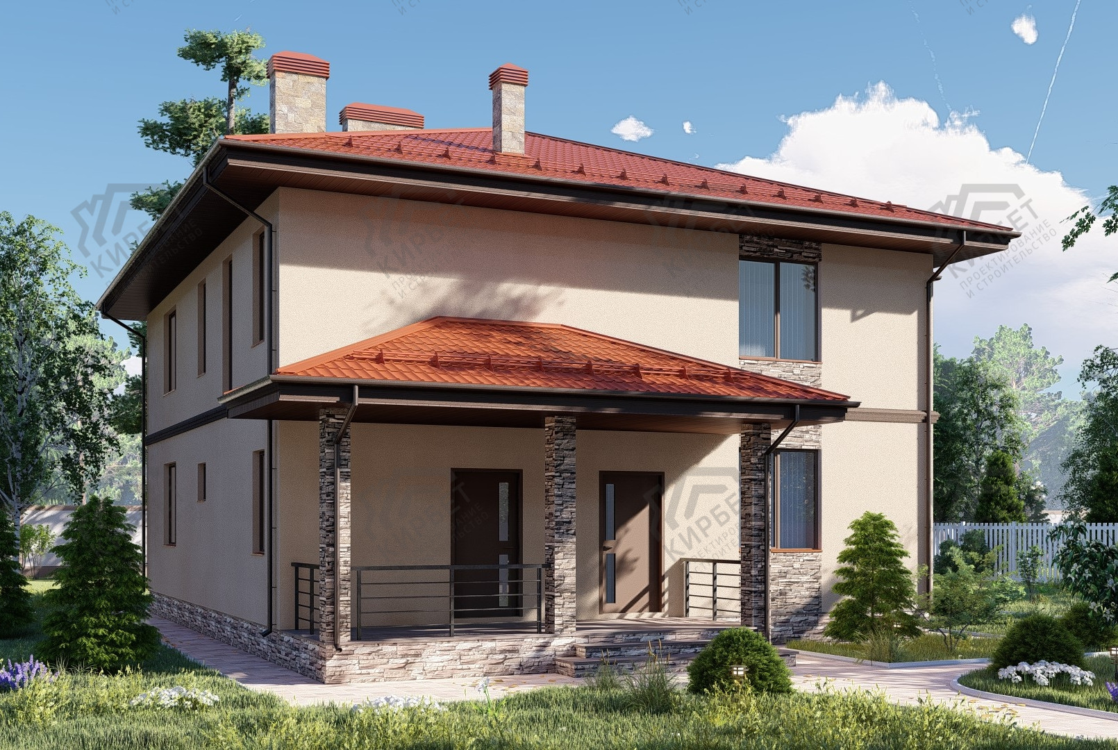 Двухэтажный дом из керамических блоков площадью 303 м² с четырьмя спальнями и вальмовой крышей. Черепичная кровля и просторные помещения делают его идеальным для большой семьи. Надежность и комфорт в каждом метре.Характеристики