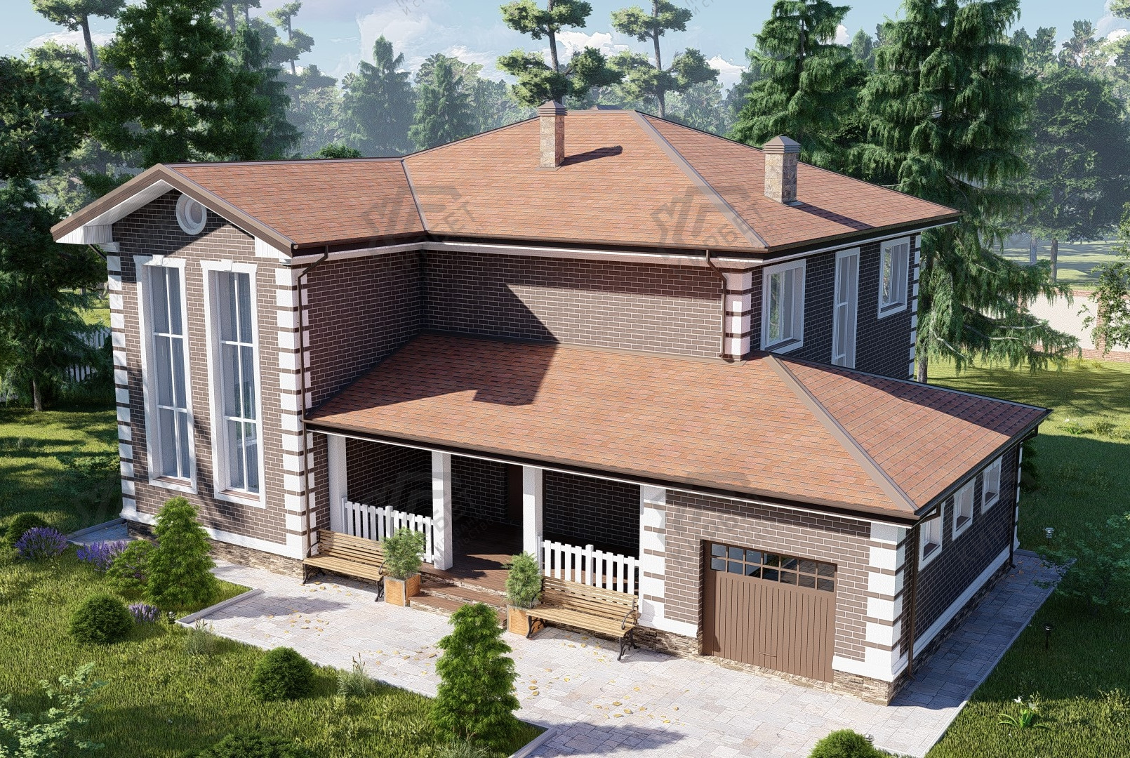 - Тип кровли: Дома с четырехскатной крышей (вальмовой)
