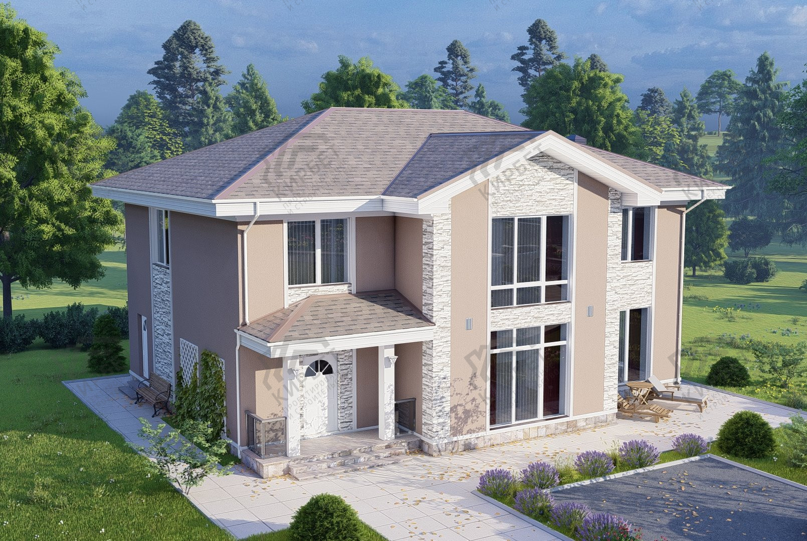 Роскошный двухэтажный особняк площадью 338 м² из керамоблоков с вальмовой черепичной крышей. Четыре просторные спальни с индивидуальными гардеробными и санузлами создают королевский уровень комфорта. Эркеры и окна придают фасаду благородный вид, а просторная терраса с колоннами превращает дом в настоящую дворянскую усадьбу.Характеристики
