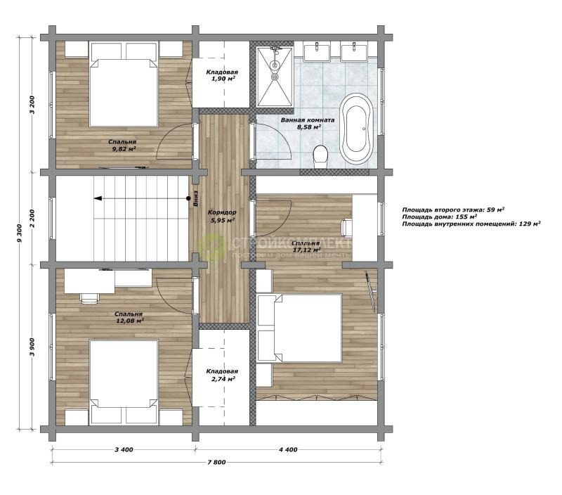 - Общая площадь: 155 м2