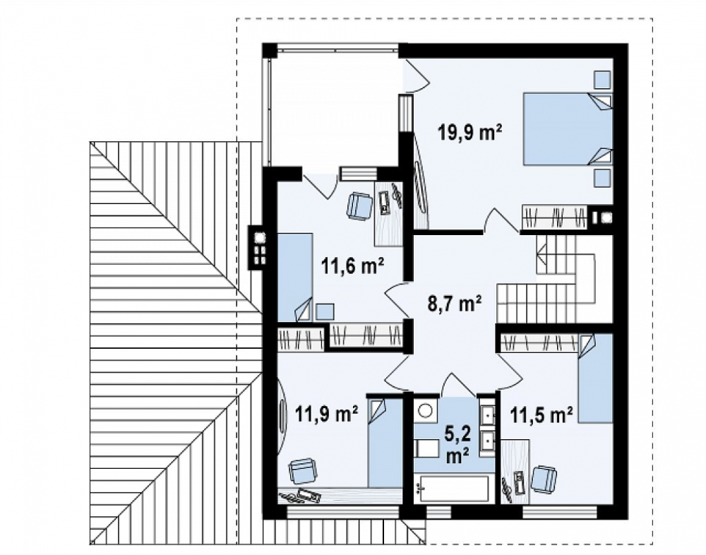 - Тип кровли: Дома с четырехскатной крышей (вальмовой)