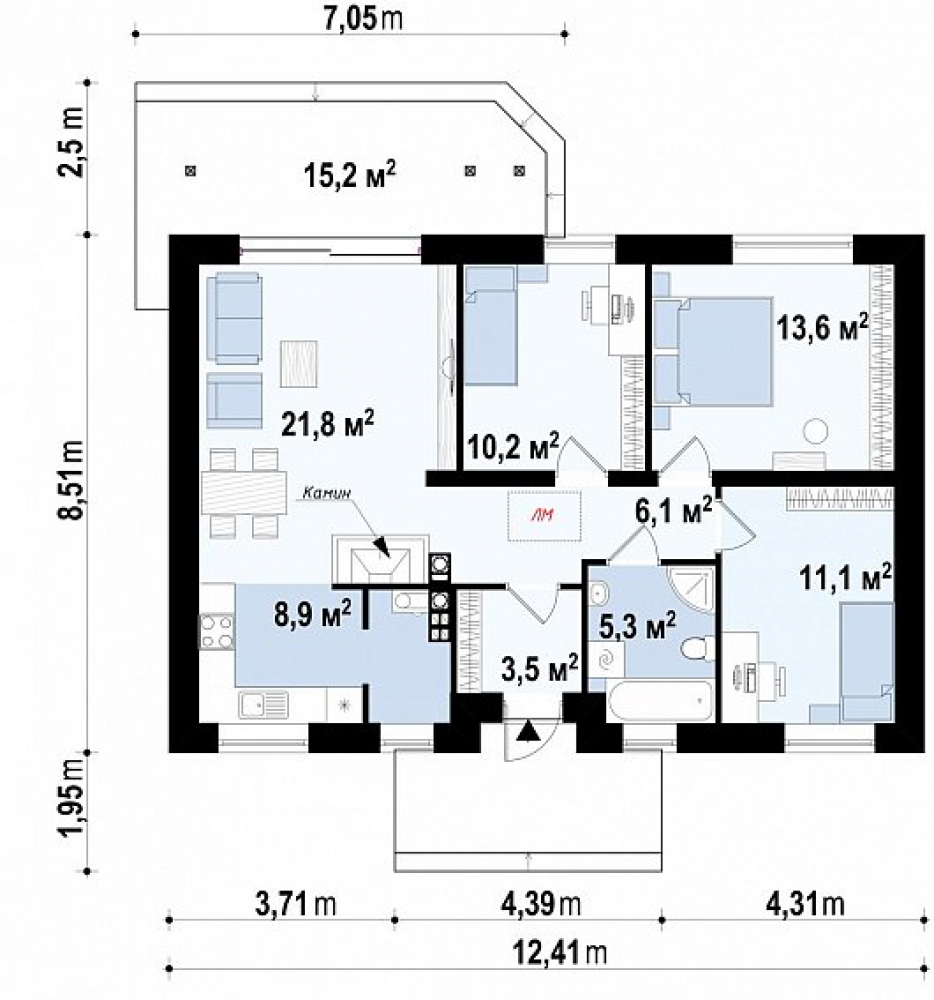 Проект одноэтажного дома Ц21