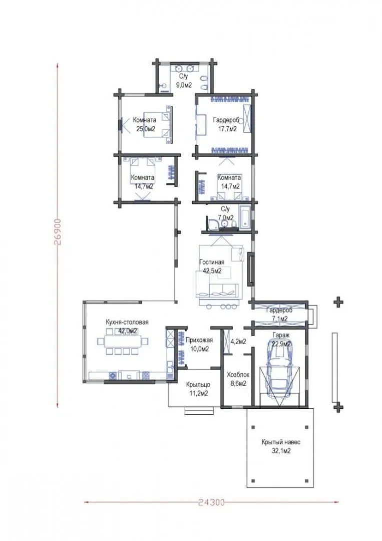 - Общая площадь: 329 м2