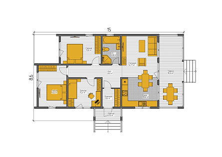 - Перекрытие SIP 224 мм. (ориентированно-стружечная плита OSB-3 Талион/Калевала/EGGER, толщиной 12 мм; самозатухающий пенополистирол НовоПласт/Knauf Therm). Соединение панелей через строганый брус камерной сушки сечением 95х195 мм.