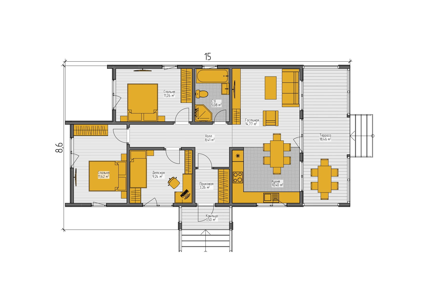- Межкомнатные перегородки сухая строганая доска камерной сушки сечением 45х145мм. (несущие стены) и 45х95мм (не несущие перегородки).