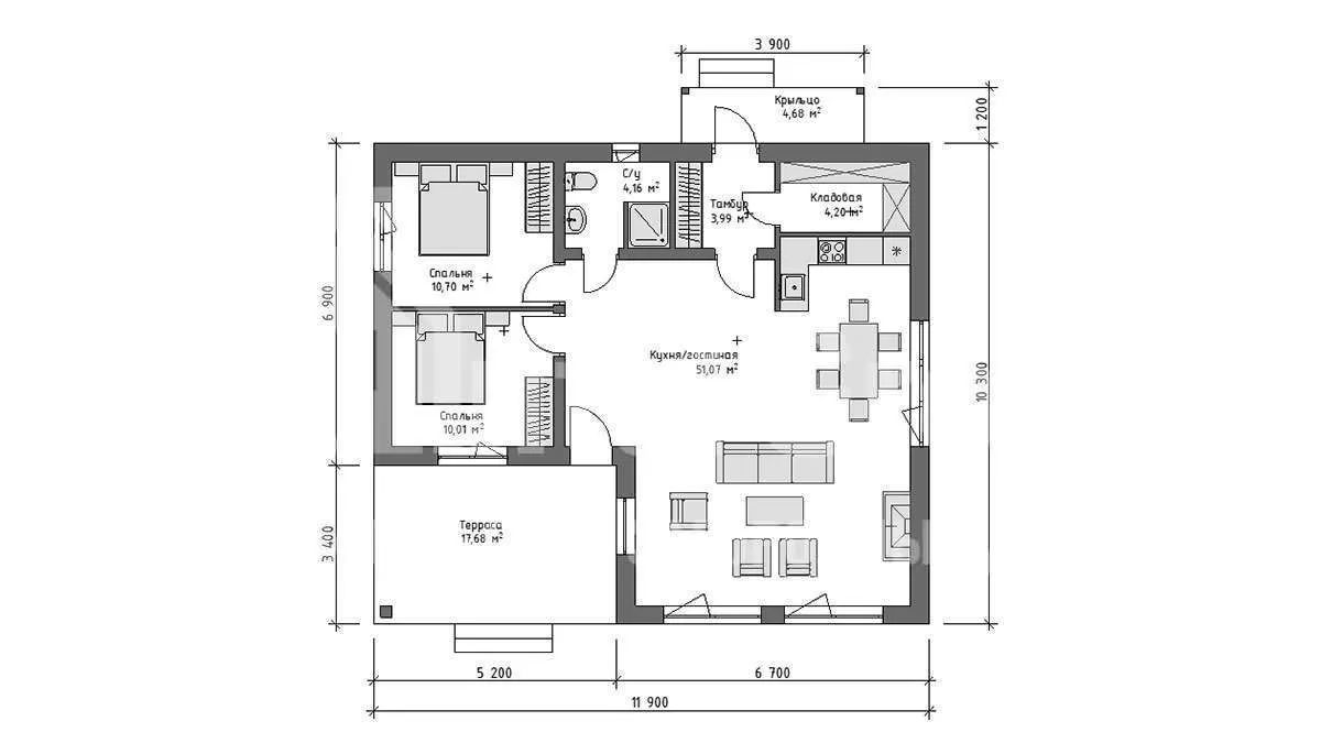 Проект одноэтажного дома D-105