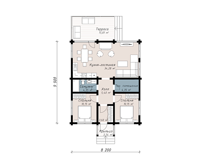 Проект одноэтажного дома Одноэтажный дачный дом из двойного бруса «Лапландия»