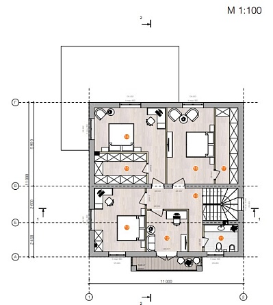 - Несущие стены толщиной 300 мм, благодаря высоким теплотехническим свойствам с учетом внешней отделки (кирпичная кладка/утепленные панели под кирпич) проходят норму теплосопротивляемости и не нуждаются в дополнительном утеплении.