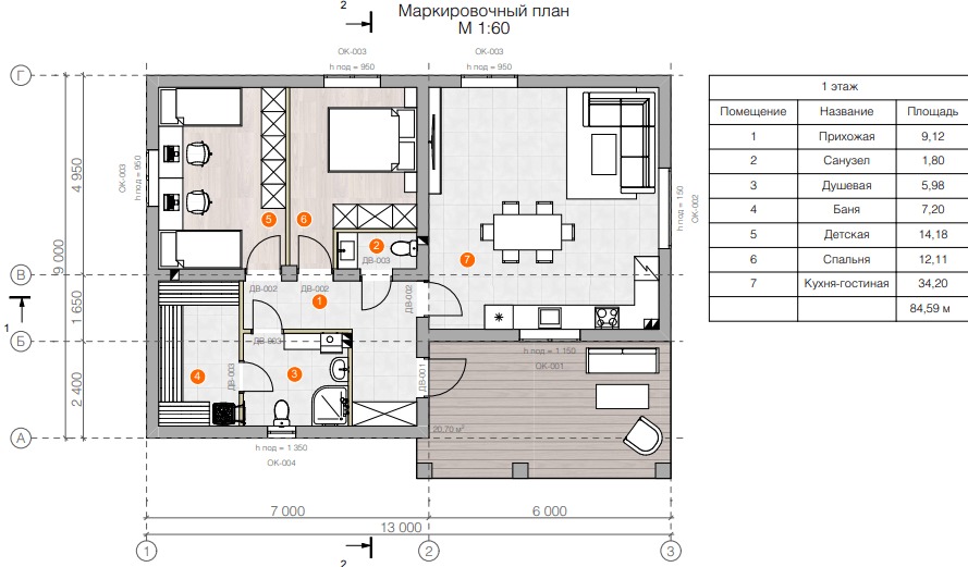 - Общая площадь: 85 м2