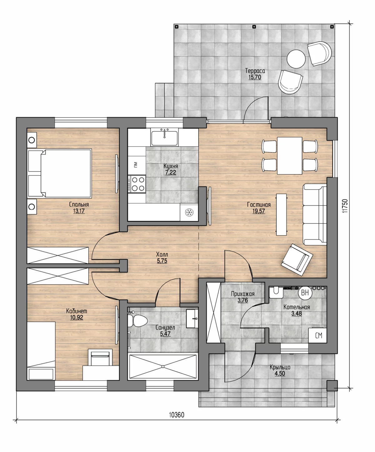 Проект одноэтажного дома одноэтажный 89,9 м2