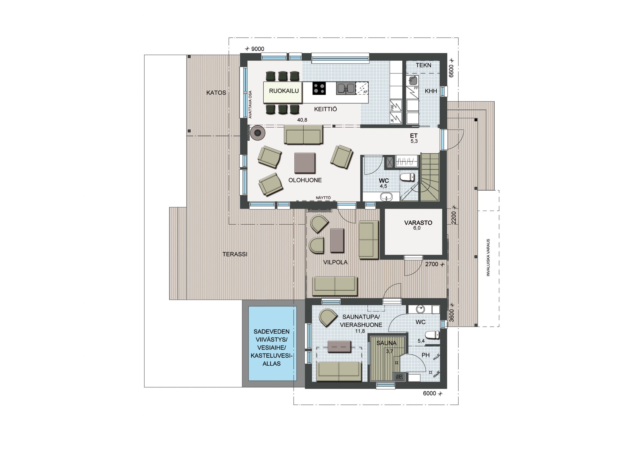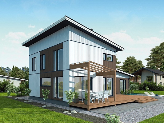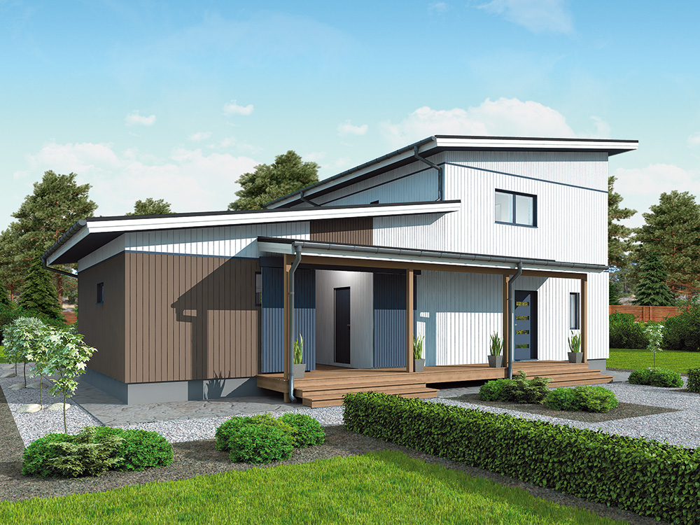 - Индивидуальная внешняя отделка фасада: Деревянная доска - скандинавский профиль UYV21х145, 21х95. Имитация бруса 20х145. Покраска укрывистыми или лессирующими красками Dufa/Фиброцементный сайдинг/битумная плитка (как на визуализации)