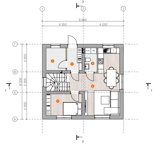 - Несущие стены толщиной 300 мм, благодаря высоким теплотехническим свойствам с учетом внешней отделки (кирпичная кладка/утепленные панели под кирпич) проходят норму теплосопротивляемости и не нуждаются в дополнительном утеплении.