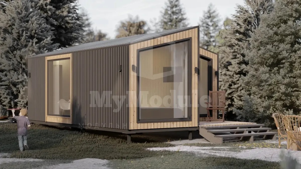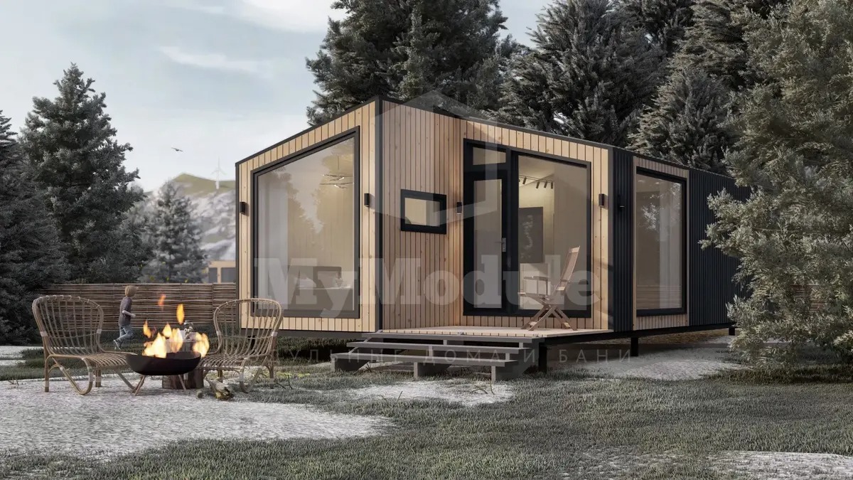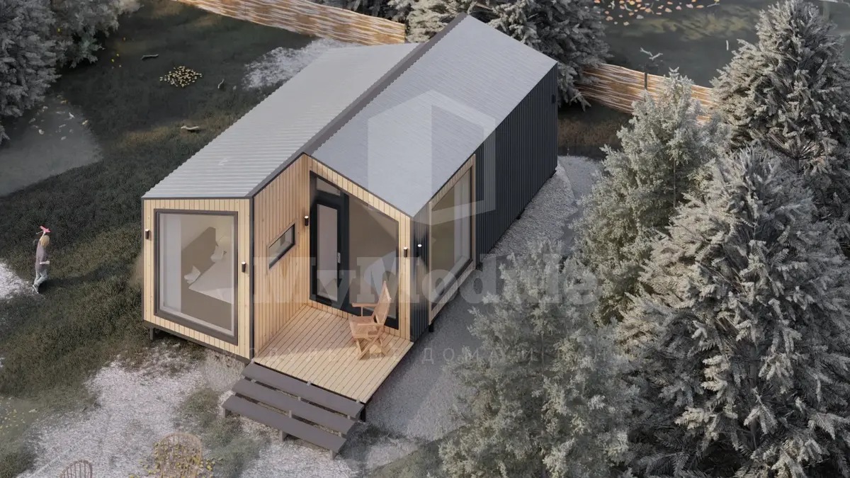 - Внешняя отделка: cтены металл профлист С8 RAL 7024 в сочетании с имитацией бруса с покраской. Кровля металл С20 RAL7024