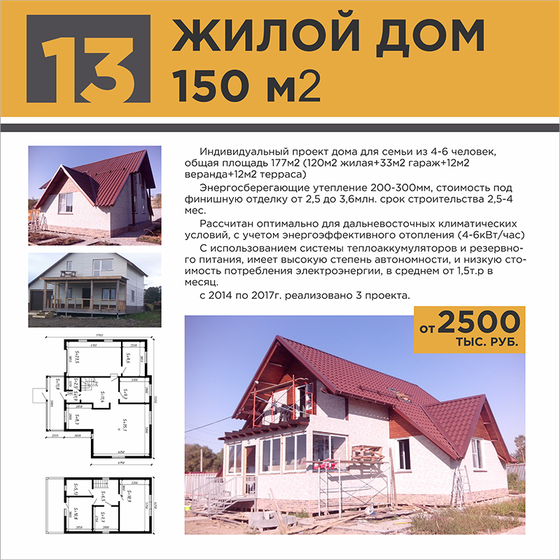 Экологичные материалы дополняют гармоничный облик здания. Никаких излишеств — только нужные 171 м². Материал кровли — металлочерепица, что добавляет зданию индивидуальность. Выбор Каркаса обусловлен его теплоизоляционными свойствами. Одноэтажная грамотная планировка разделяет приватные и общественные зоны.Характеристики
