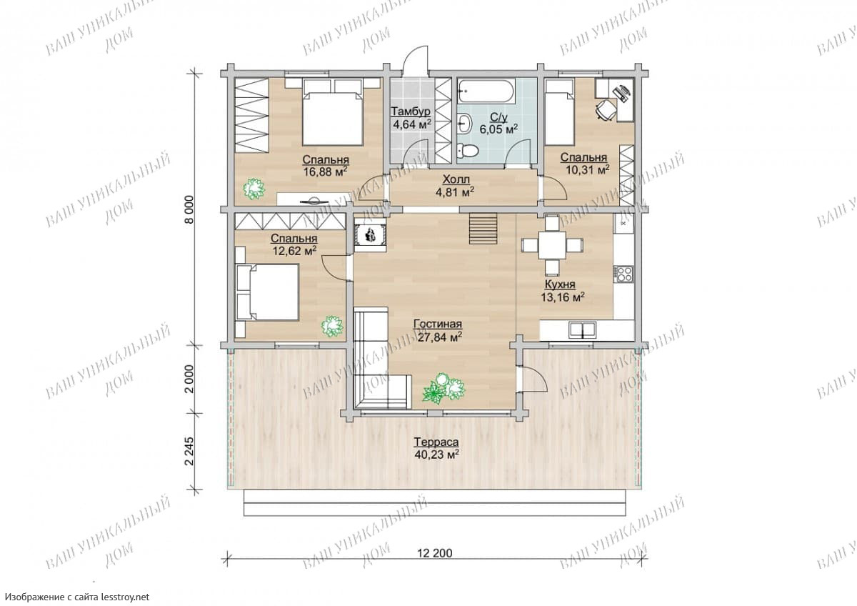 - Форма: Квадратные дома