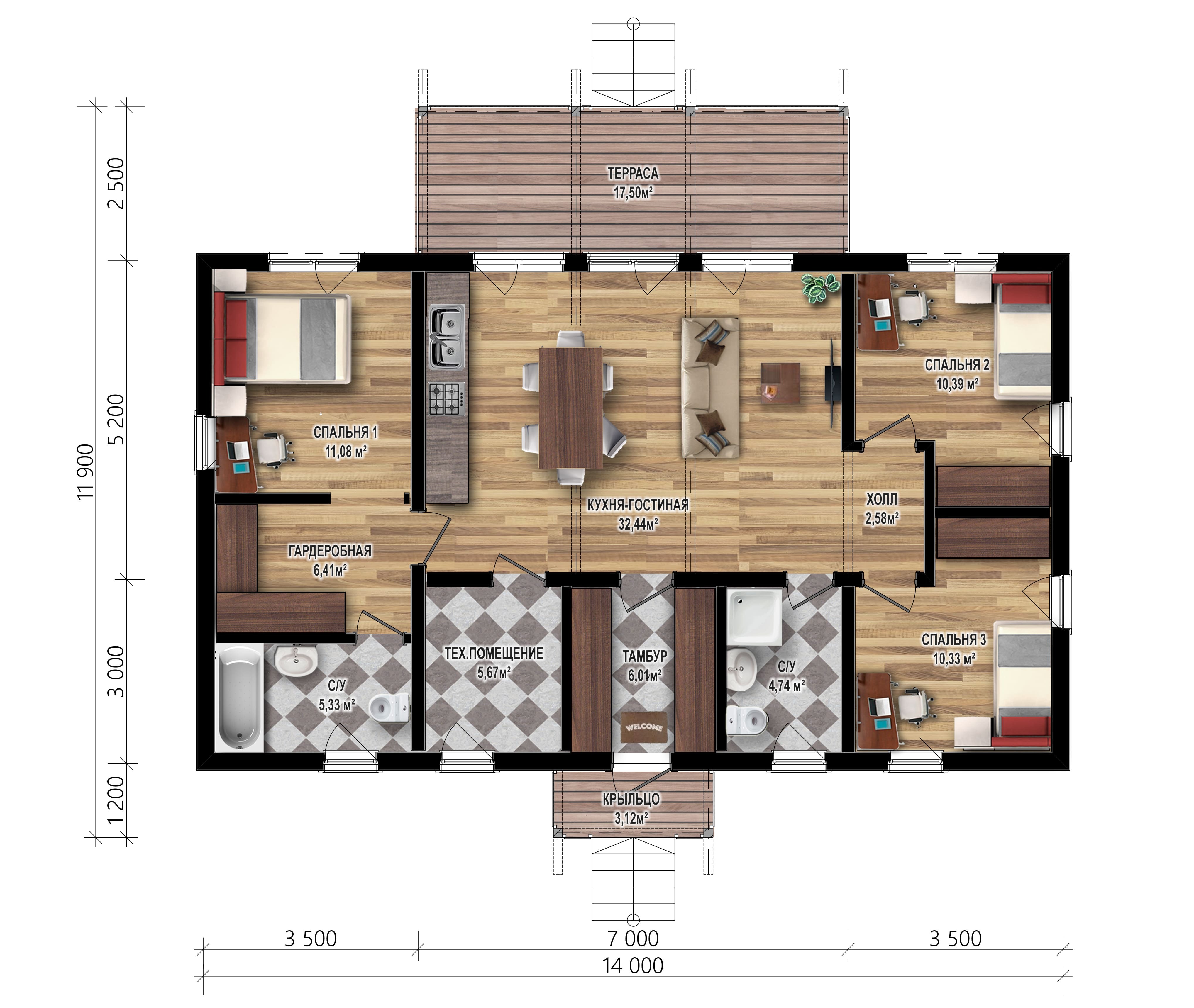 - Общая площадь: 114 м2