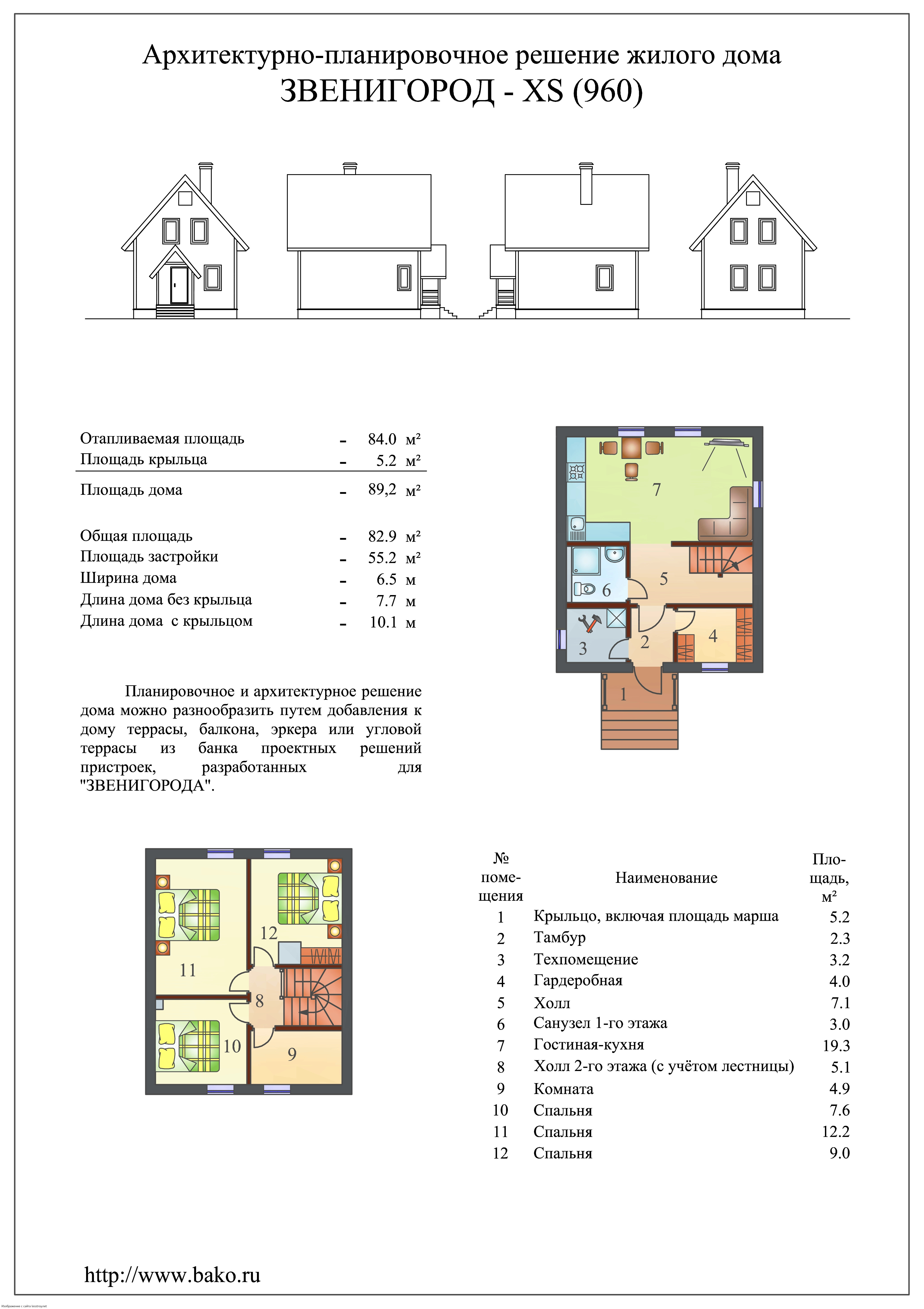 Миниатюрный каркасный дом площадью 89 м² с двумя спальнями подходит для временного проживания. Черепичная кровля делает его уютным.Характеристики