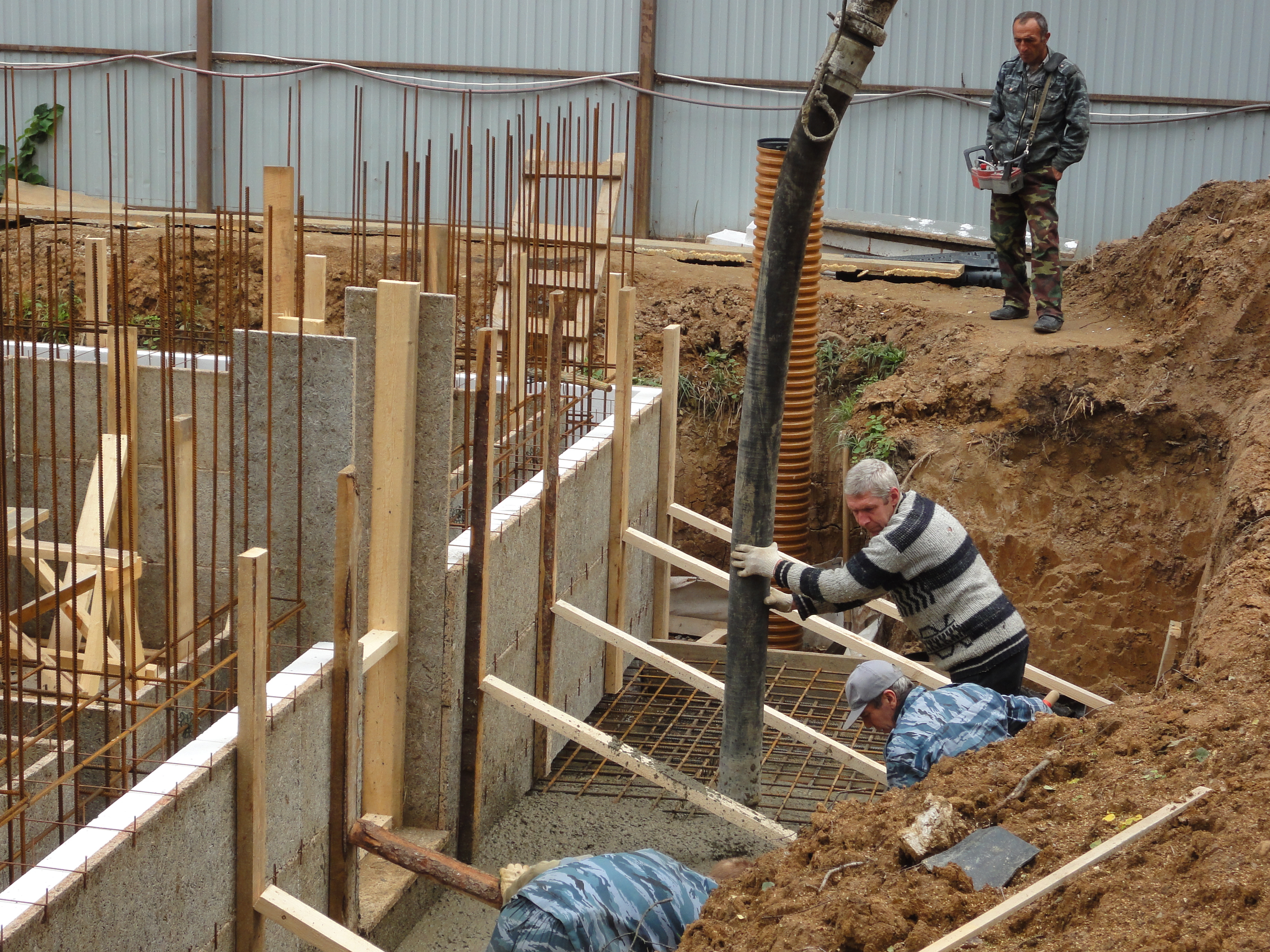 -Строительство фундамента с подготовкой под инженерные коммуникации(плита);
